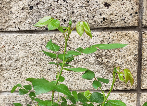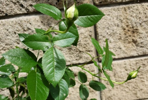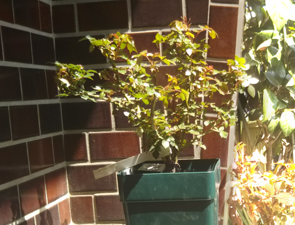 ボレロのつぼみは少しずつ大きくなってきています。新しく生えてきた葉っぱが、もともとある葉っぱよりも大きくて元気そうです。ブラインドかな? と思われる枝があるけれど、このまま少し様子を見ようと思います。