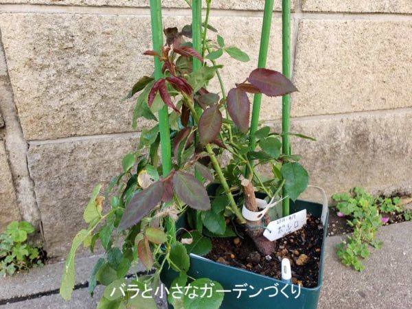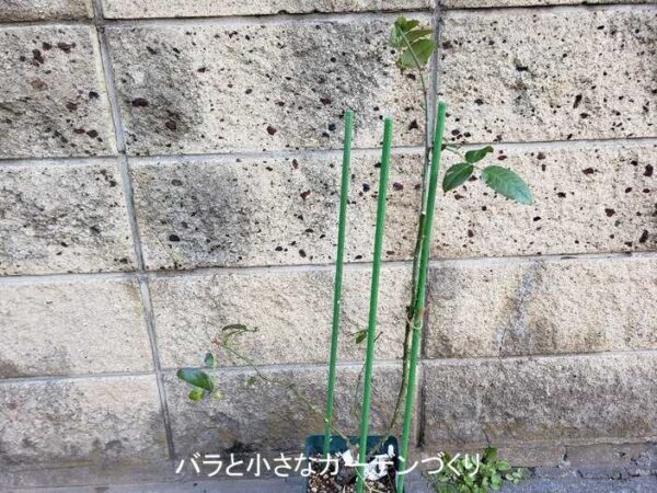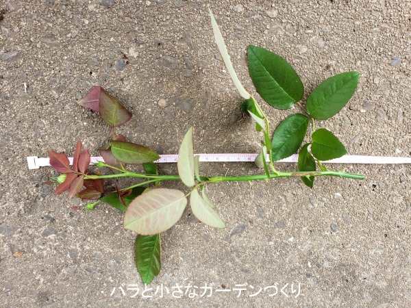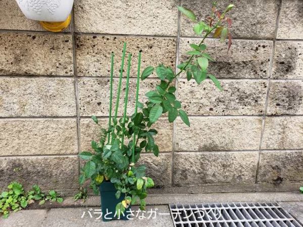 またつぼみが上がってきたので、指でピンチしました。ボレロは「シュートが出にくい」といわれるそうですが、これだけ細い竹串サイズの枝からも次々つぼみを上げるので、そちらにエネルギーを取られるせいかな、と思いました。