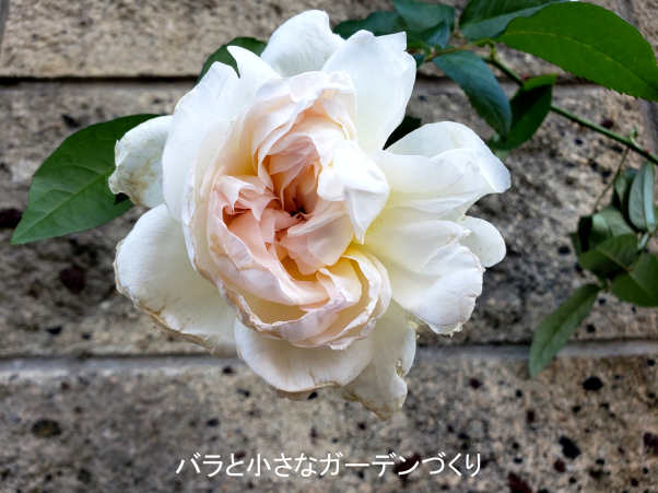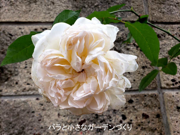 花径は7cm。本来のボレロよりも少し小ぶりですが、花の中央に淡いピンクが差した、ボレロらしい優しい雰囲気に咲きました。我が家はハッキリした色のバラが多いのですが、こういうふんわりしたバラをじっくり眺めるのもいいですね。雨粒を載せた様子もきれいです。