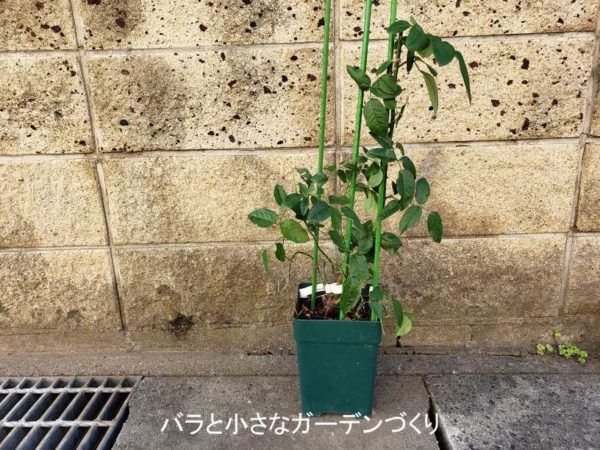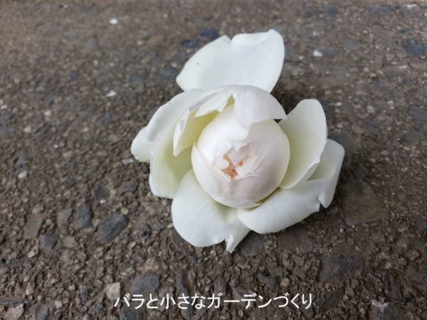 少し早いけれど、花がら切りをかねて夏剪定することにしました。上から1/3ほど切り戻し、樹高55cmほどに。肥料(バイオゴールドバラ用)を、6号鉢での規定量15粒のところ、少ないめの10粒入れました。