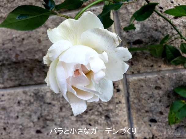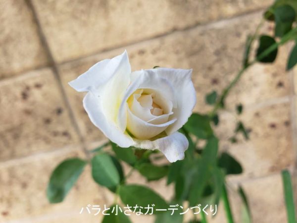夏剪定をしてから約1ヵ月。切り戻したところから伸びた花枝に秋花が1輪咲きました。樹高は105cmほど。陽ざしを求めてか、前に突き出すように咲きました。