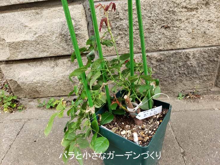 またつぼみが上がってきたので、指でピンチしました。ボレロは「シュートが出にくい」といわれるそうですが、これだけ細い竹串サイズの枝からも次々つぼみを上げるので、そちらにエネルギーを取られるせいかな、と思いました。