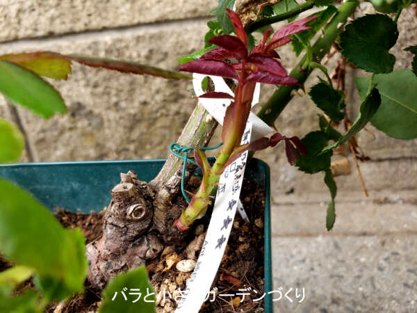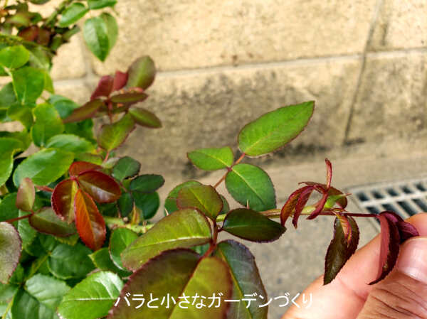 今年発生したベイサルシュートをピンチしたところから、とても立派な枝が長く伸び出てきたので1週間前に2度目のピンチをしました。そこからもう赤い新芽が出てきています。