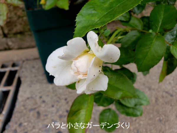 ウォーキングイベント参加のため数日留守にしていたら、ボレロの残りの花が咲いていました。咲きたてではないので、中心に色が乗らず純白の花がまるく可愛らしく咲いてくれました。
