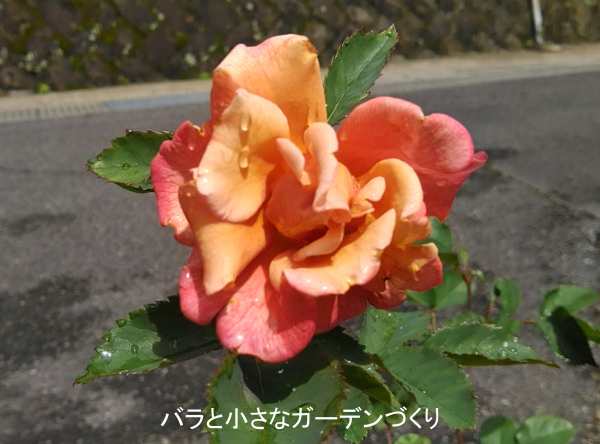 「バラno.1」(カネア)の土に、日当たりの良い場所なので水切れ対策に「水のお留守番」(大宮グリーンサービス)を混ぜて植え込みました。
