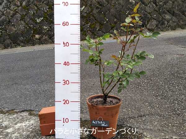 ミニバラの「チョコフィオーレ」が一気に生長してきました。樹高は75cm超え。ミニバラとはいえ、大苗だったからかなぁ?