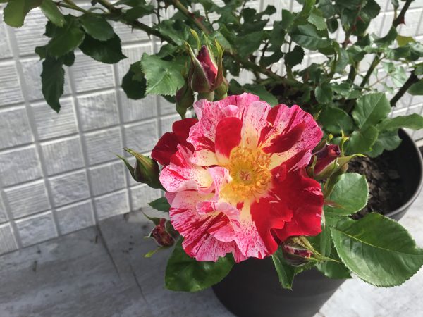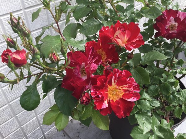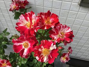 フォースオブジュライは、はっきりした絞り模様が華やかで、育てやすいバラです。庭のいいアクセントになってくれています。