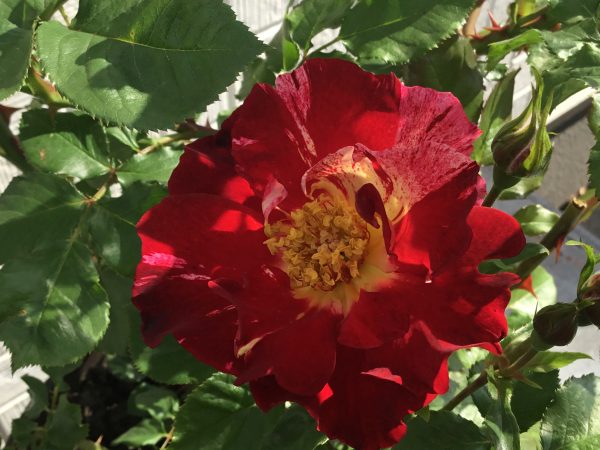 フォースオブジュライ(Fourth of July)は、直訳すれば「7月4日」。アメリカの独立記念日をさす品種名をもつバラです。花の色が赤と白の絞りで、赤×白のストライプ模様のアメリカ国旗をほうふつとさせますね。色鮮やかな花が目を引きます。