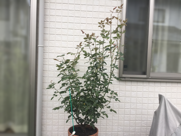 連日の暑さのため夏バテしてしまいました。下葉がほとんど落ちています。HB-101(活力剤)の希釈液を与えて様子見です。同じく「そだレポ」中の青竜よりはマシですが・・・。ガブリエルはなんとか秋花を咲かせられそうです。