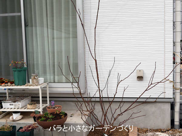夏頃には背の高い株になってくれるかなぁと期待しています。剪定後の樹高は80cmです。