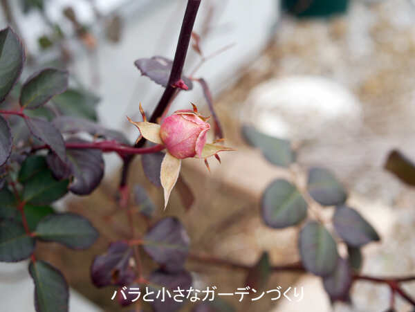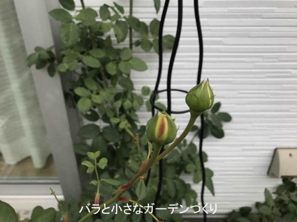 切り戻した枝はようやく新芽が吹いてきたところですが、ヨトウムシ被害をまぬがれた枝先にコロンと丸い蕾がつきました。ほかにも出たばかりの小さな蕾もあり、秋花は7輪ほど咲いてくれそうです。大事に咲かせたいです。