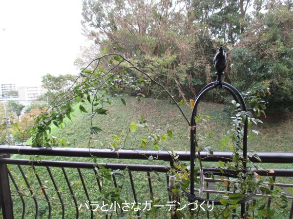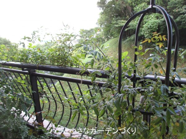 枯れ枝は取り除き、折れ曲がった枝に添え木してテープで補強。さらに全体を誘引しなおしてしばし様子を見ます。来年、花を咲かせるのはほぼこれ1本なので、なんとか枯らさずキープしたいものです。