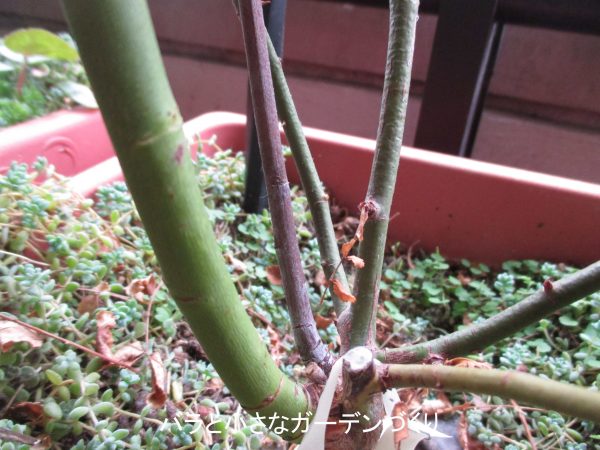 ▲春につぼみを持ったベイサルシュートが枯れました><