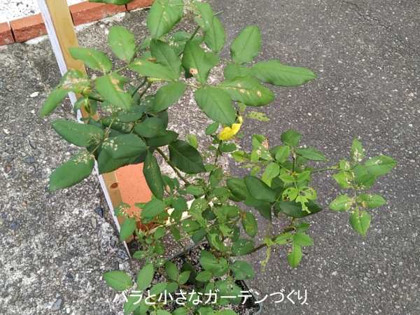 先月から我が家のバラ全体に急激に黒星病が広がり、ほとんど葉っぱがなくなってしまった株も多いなか、「ラピスヴェール」は黒星病があまり広がらず葉っぱがたくさん残っています。