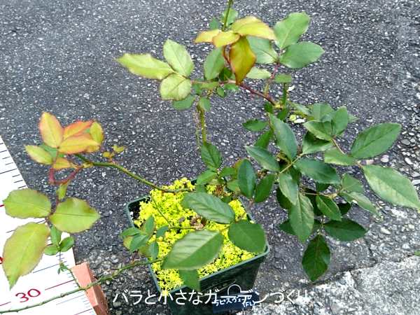 もともとの6号鉢から8号鉢に鉢増ししました。土は「バラNo.1」(カネア) 。そして「水のお留守番」(大宮グリーンサービス)だけ入れました。