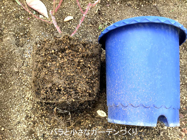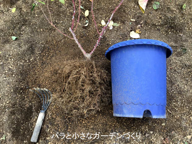 他のバラと同じ手順で用土替えをし、水やりして今回の手入れは完了です。この先、2月中旬以降に冬剪定をします。