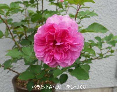 花径8cm。四季咲き。フローラルダマスクの強香。樹高0.8mのシュラブ樹形。バラの家のスコアはまだ未掲載です。