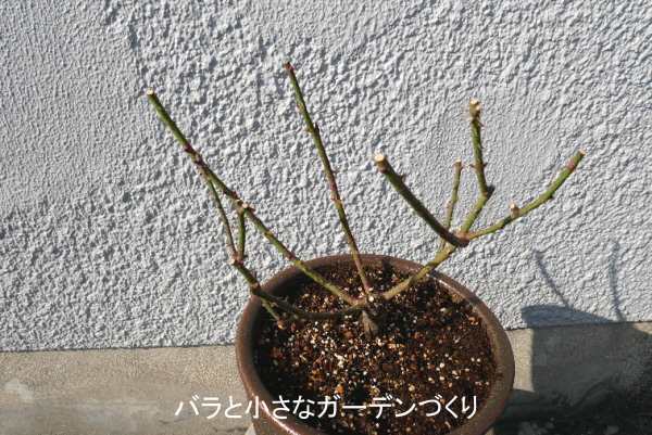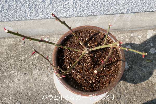 今年の1月に裸苗に近い形でお迎えした「リヴレス」。「New Roses」誌によると、構ってちゃんだそう。樹形が込み合いそうに思えたので、まずサックリと冬剪定をしておきました。