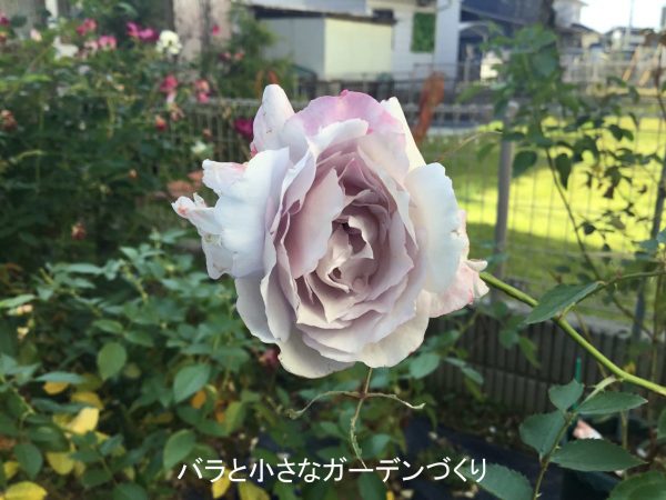 ついに秋花が開花しました! 端にいくほど淡くなる品の良い淡紫色、不規則に切れ込みの入った花びら、ふんわりとした印象の花容で素晴らしい強香。マスカットのような上品でフルーティな、とてもいい香りがします! たしかに名前の通り、悪魔的なものを感じさせるほど魅力的なバラですね。