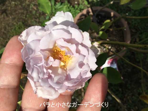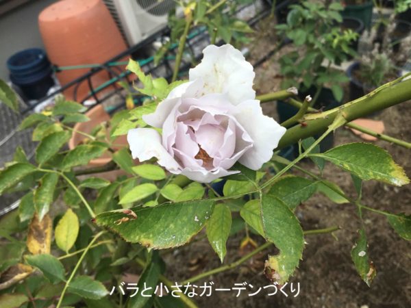 ルシファーAの6番花が開花しました。花径6cm。香り控えめ。なんだか「ブルームーン」の夏花っぽい花です。「ルシファーA」の株にはもうひとつ蕾がついていて、おそらくこれが今年最後の花になるでしょう。