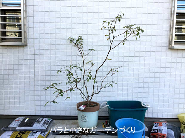 枯れ枝を切り取り、芽が動いていない枝の先を軽く揃えました。上の写真とほとんど変化ありませんが、よーく見ると不要枝を切り取ったり枝先が短くなったりしています。こちらも肥料は与えません。