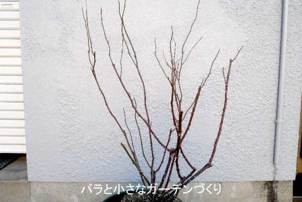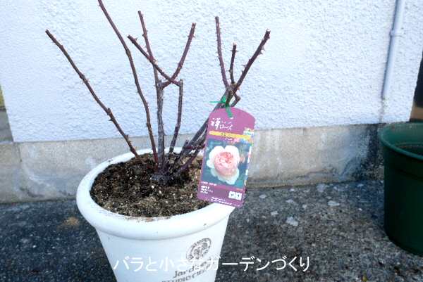 1/22 鉢増し。寒肥として「RSKバラ園バラの肥料」(松栄産業)を少量。土は「バラの培養土」(相原バラ園)を使用しました。