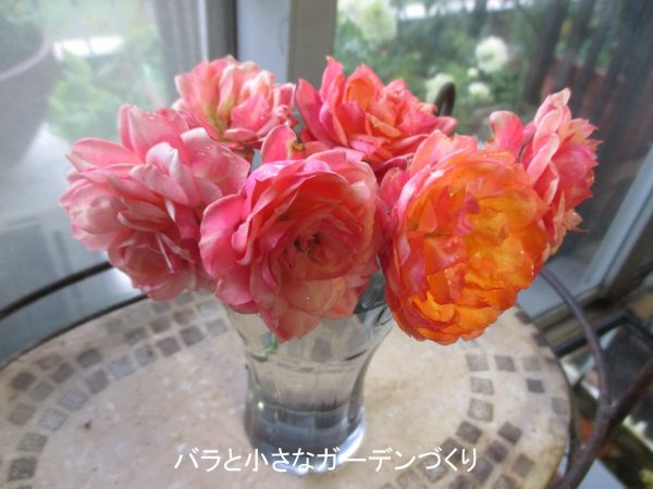 11月23日の「3種類のミニバラ」/「ナポリ」の花をカット