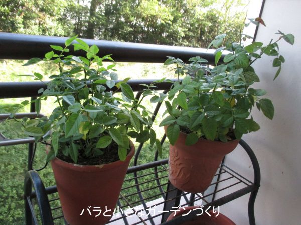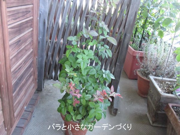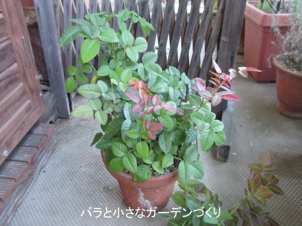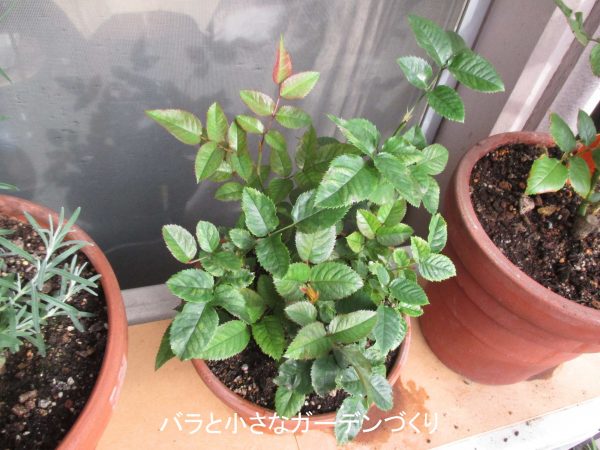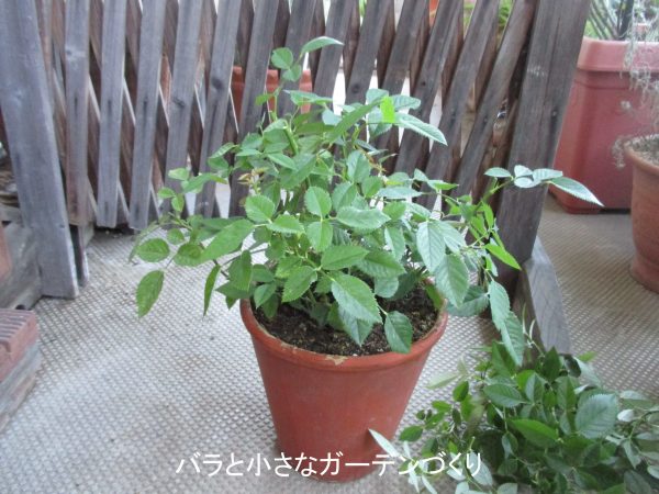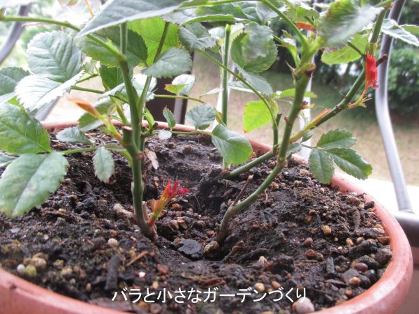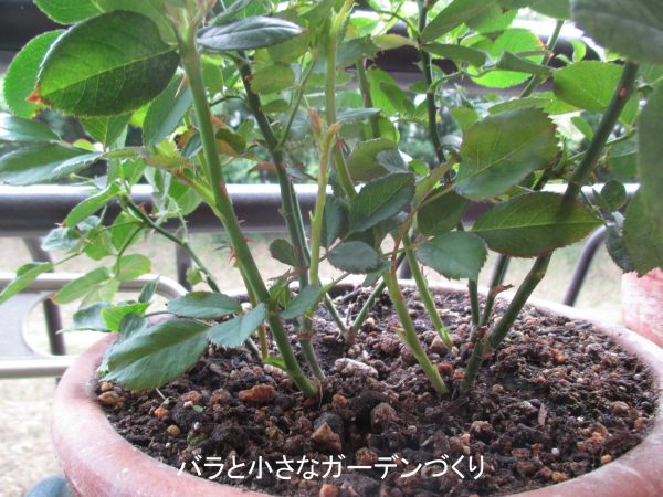 今年の秋に咲かせるのは、最初から調子の良かった株だけです。高さ25cmに剪定しました。ミニバラは芽立ちが早いので、これくらい深く剪定しても大丈夫でしょう!