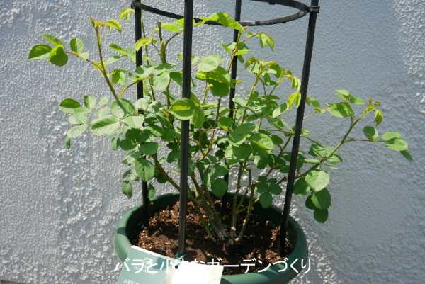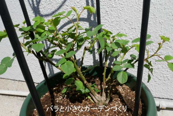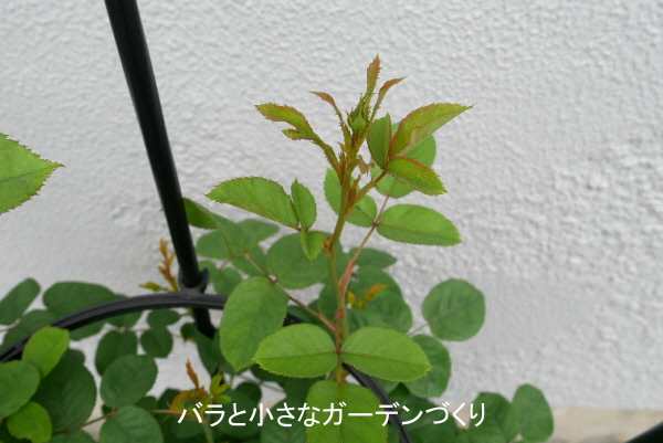 イングリッシュローズのなかでは生長が遅かった「ナイ・ベヴァン」も、ゆっくりながら茂り始めました。株元のベーサルシュートは30cmほどになっています。そろそろソフトピンチも考えないといけませんね。