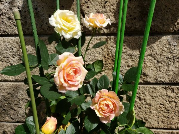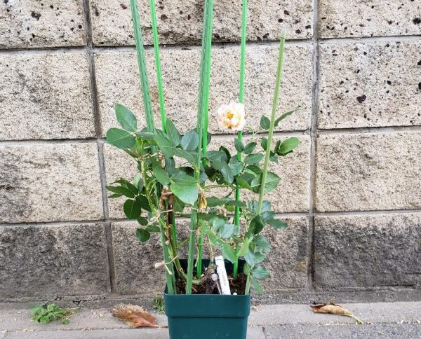 樹高1.8mまで伸びるシュラブ樹形のバラなので、小型のつるバラに仕立てることもできます。