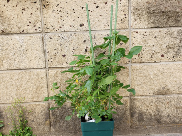 枝葉の状態から、バラの家6号角鉢に戻すのをオススメします。