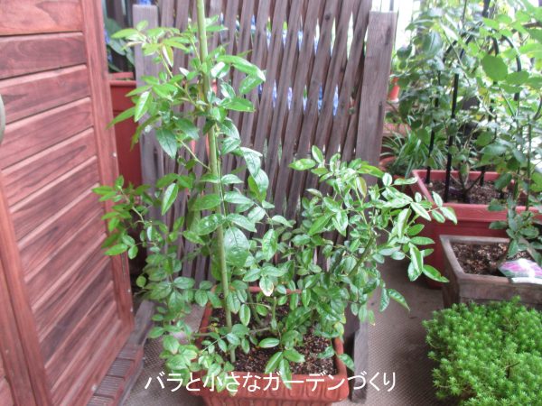 去年もそうだったのですが、1番花が終わった後、あまり日当たりのよくないあたりの、育ちの悪い枝が枯れます! 去年はごっそり4本くらい枯れたので驚いたのですが、ベイサルシュートの発生も多いので、枝の更新が激しいタイプの品種なんだろうと思います。