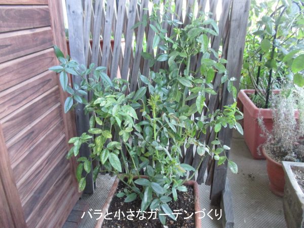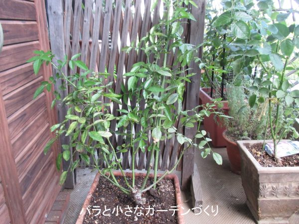 梅雨でもあるし、蒸れ対策もかねてブラインドしか出ていない育ちの悪い枝を3本、株元からカットしました。
