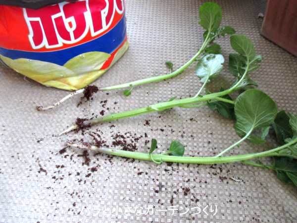 この引き抜いた芽を植えれば、この苗からもイモが育つそうです。残念ながら我が家は植えるスペースがないので、そのまま廃棄しました。