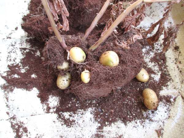 ここで衝撃的な事実が発覚! ポテトバッグからは中サイズ9個収穫できたのに対し、それ以外からはその半分量しか収穫できませんでした!