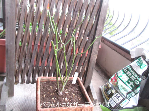 今年は、ハイポネックスの培養土を使います。「バラの土」は高いし重いので(^^; わたしはこういう汎用性のある培養土を使うことが多いです。
