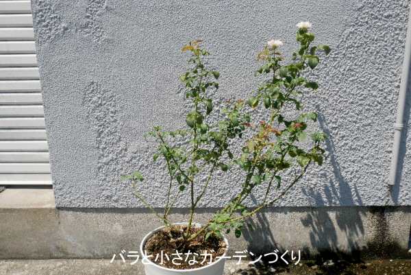 「ソワイユ」は、もともと他のバラから離れた場所に置いてあったのですが、念のためさらに離れたところ(西日の当たるエリア)に引っ越しました。