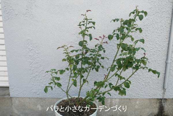 このバラは春先に枝の数を厳選して、枝を太くするのに専念するのが大事。芽かきをしないと、細い枝ばかりでヒョロヒョロになってしまう恐れがありますね。