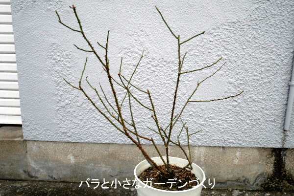 細い枝は残しても凍害や病気の元になるので、すべてザックリと1/3ていどの高さまで切って太い枝のみに。剪定後の樹高は45cmです。