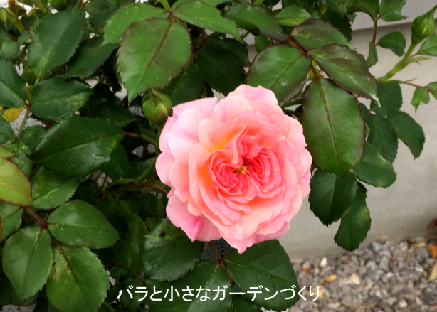 スウィートドリフトの最初の1輪が開花しました。昨年に比べるとだいぶ淡いアプリコットがかったピンク色で、「アプリコット・ドリフト」と言われたら信じてしまいそうです。花径は4cm強で、香りはほぼ感じられません。