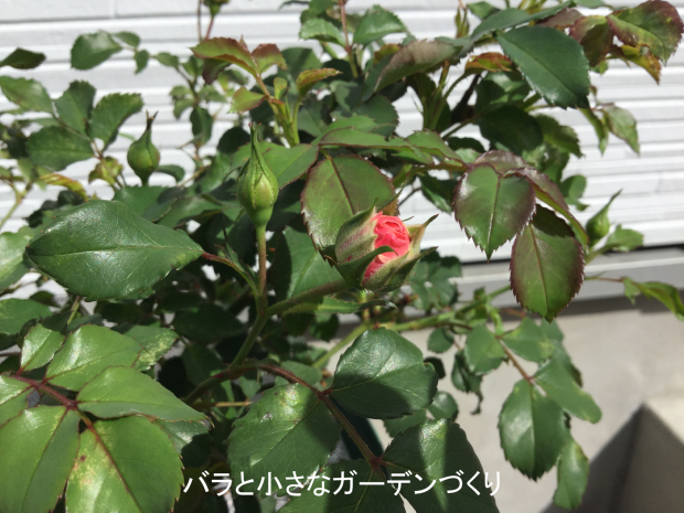 スウィートドリフトもつぼみが膨らみ、花びらの色が見えてきました。もうすぐ開花しそうです。