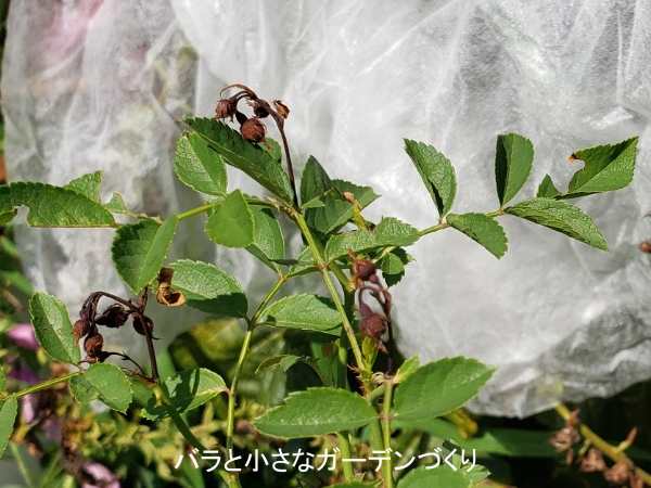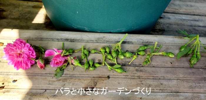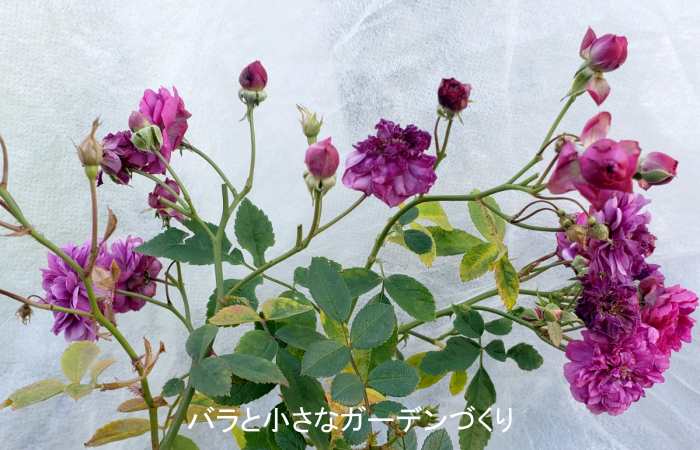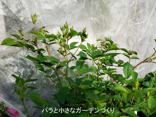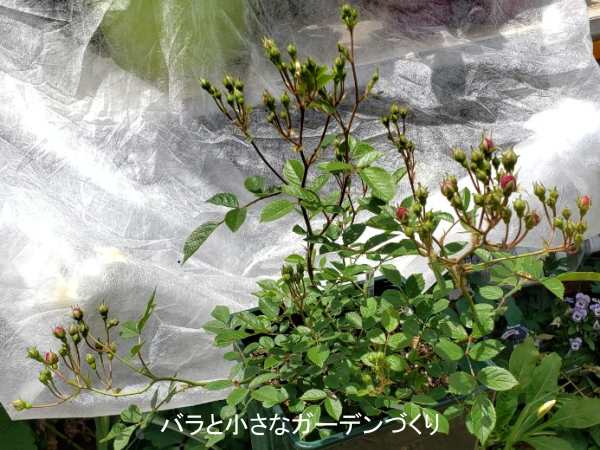 脇芽を欠いたり、込み入った枝を付け根から2本ほど取り除いたり、勢いの良い枝を短く切り戻したり──。ミニバラはまだ良く分からないところがあるので、いろいろ試行錯誤しながら剪定しました。少しは風通しが良くなったかな?
