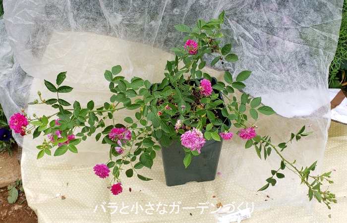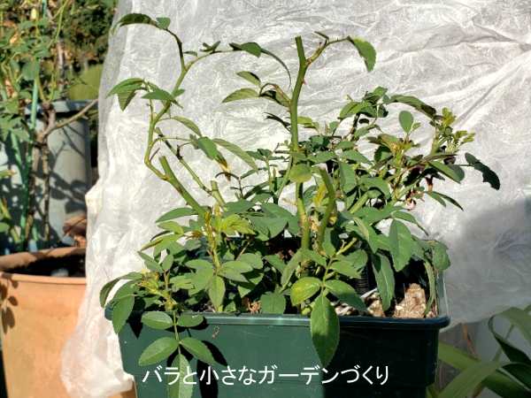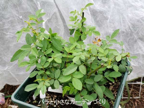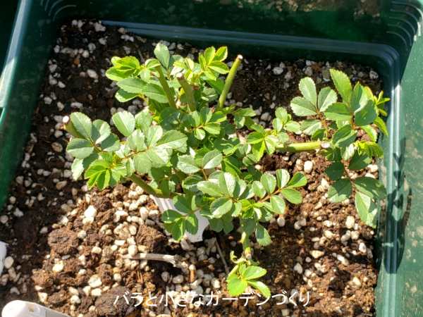 前、挿し木のミニバラで失敗した経験があり、ミニバラには苦手意識があったんですが、昨年5月に「スイートチャリオット」の接ぎ木苗をみつけて、接ぎ木苗なら挿し木苗より難易度が下がるんじゃないかと思いお迎えしました。