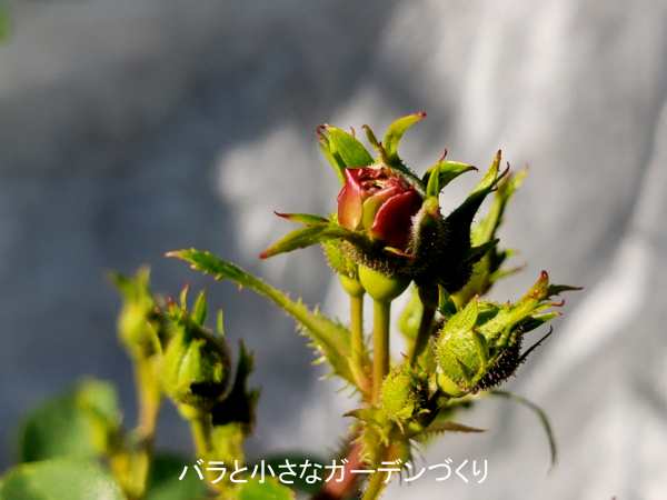 イートチャリオットの蕾がガク割れしてきました。中から赤い花びらが覗いています。小花だし、あと数日で咲くかもしれませんね。