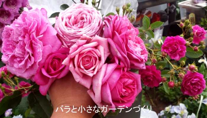 ▲濃いピンクのバラで花色比較 写真提供/天女の舞子
