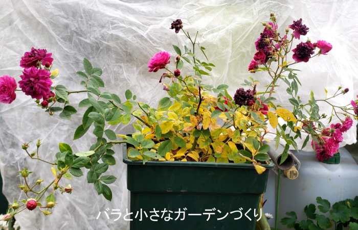 回のレポートから1カ月たち、花は枯れたけれど蕾はそのまま開きません。これ以上咲くことはないだろうということで、見切りをつけて冬剪定と冬の植え替えをしていきます。