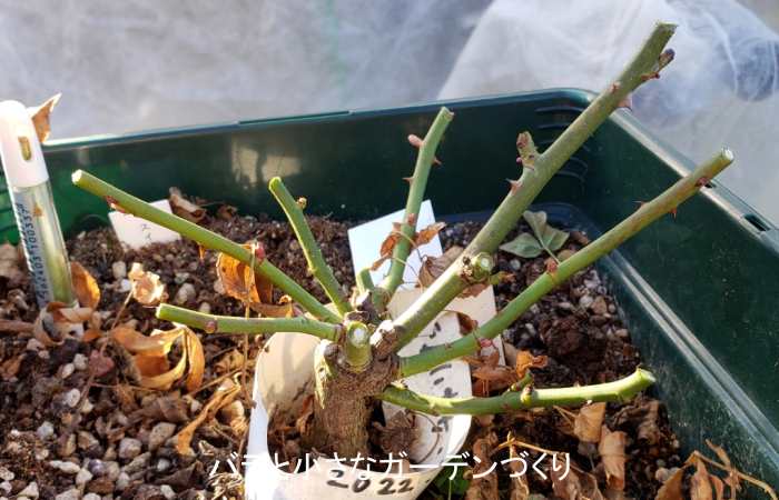 ▲蕾が開く気配がないので、冬剪定と植え替えを 写真提供/天女の舞子