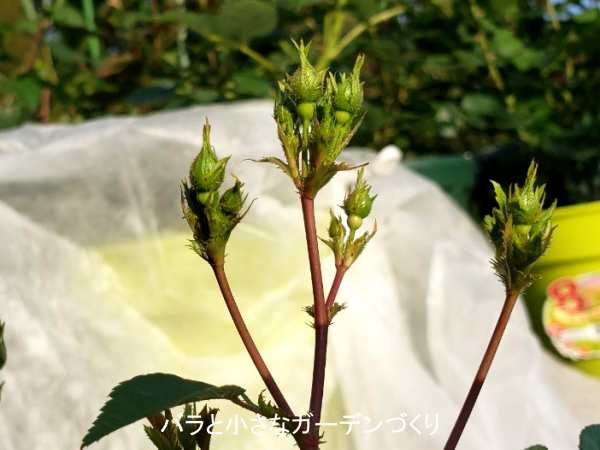 ▲ほかのバラたちと一緒にダコサプ散布 写真提供/天女の舞子
