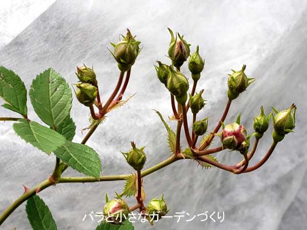 枝先に2番花の蕾が房状にたくさんついています。