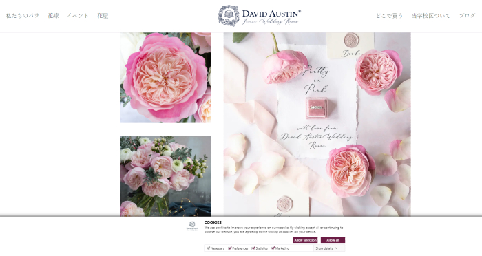 ▲イングリッシュローズの切り花(カットローズ)を販売するサイトより